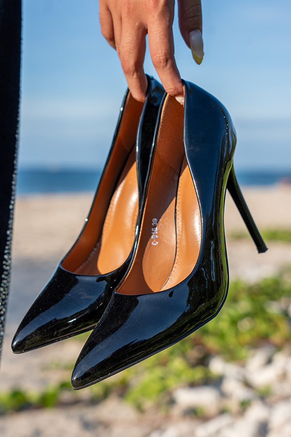 Affirmez votre allure avec ces escarpins noirs vernis au design chic et féminin. Leur bout pointu élance la silhouette tandis que le talon fin apporte une touche de sophistication irrésistible. Brillants et raffinés, ils subliment aussi bien une tenue de soirée qu’un look working girl élégant.