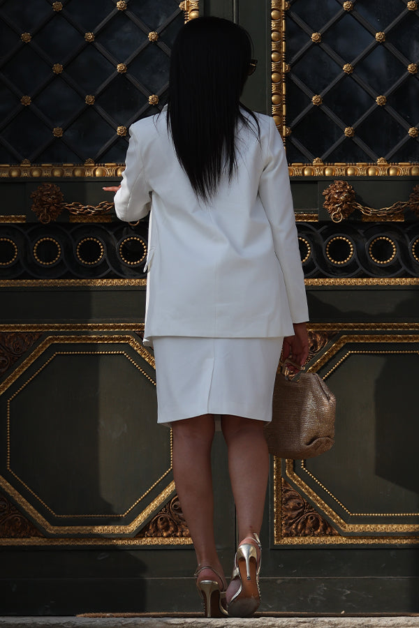 Obtenez un look élégant et décontracté avec cet ensemble blazer et jupe. Fabriqué à partir de 95% de polyester et 5% d'élasthanne, ce blazer oversize et cette jupe droite aux genoux offrent confort et style. Ajoutez une touche de sophistication à votre garde-robe avec la fermeture à l'arrière.