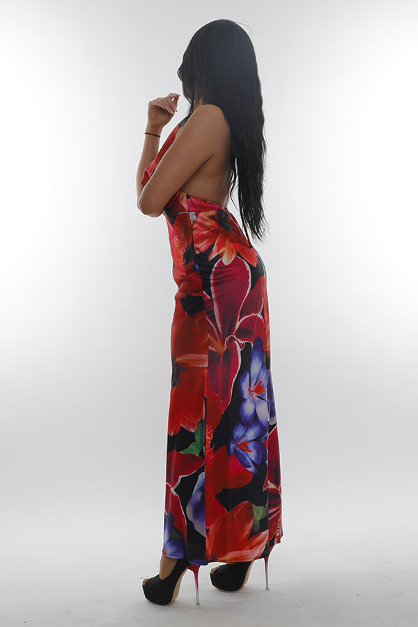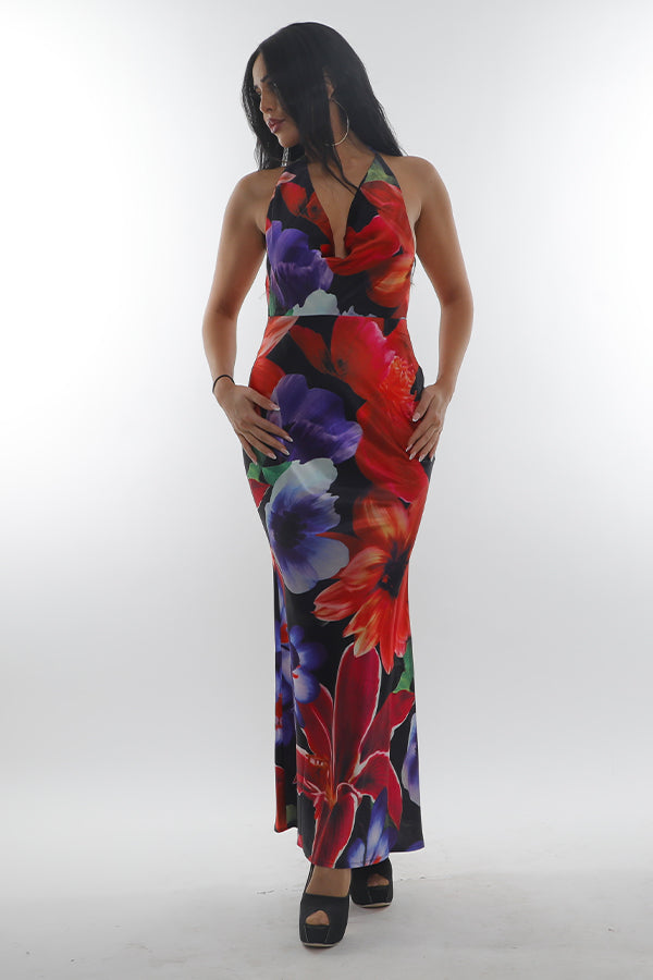 Sublimez votre style avec cette robe longue satinée fleurie. Dos nu élégant et tissu fluide pour un look romantique et raffiné, parfait pour toutes les occasions.