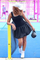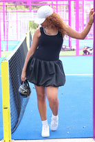 Avec la robe sans manches tennis côtelée, vous pourrez profiter pleinement de votre journée sportive grâce à son tissu en viscose et nylon, offrant une robe confortable et élastique. Son design à la fois potelé et bouffant, avec un col rond à rayures, vous donnera un look élégant et dynamique pour vos matchs de tennis.