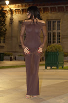 Sublimez votre silhouette avec cette robe longue chocolat, élégamment moulante. Son encolure Bardot dévoile délicatement les épaules, tandis que le détail drapé noué à la taille accentue vos courbes avec finesse. Parfaite pour une allure sophistiquée et féminine en toute occasion.
