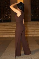 L’ensemble “Cocoa Mood” allie confort et élégance avec son top sans manches ajusté et son pantalon large taille haute en tissu gaufré doux et fluide.