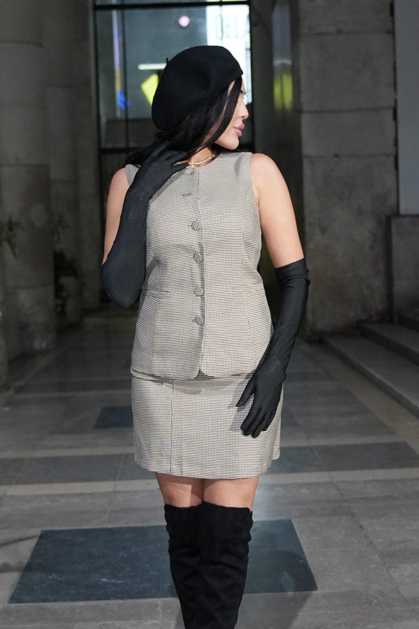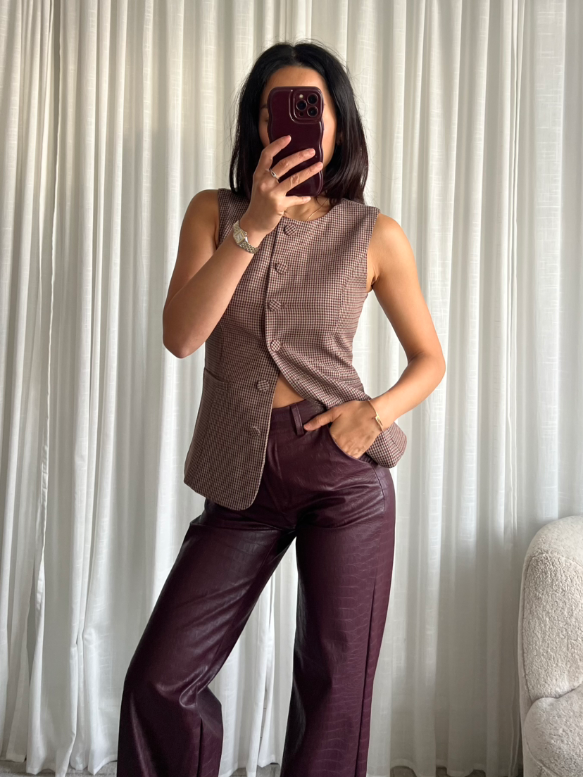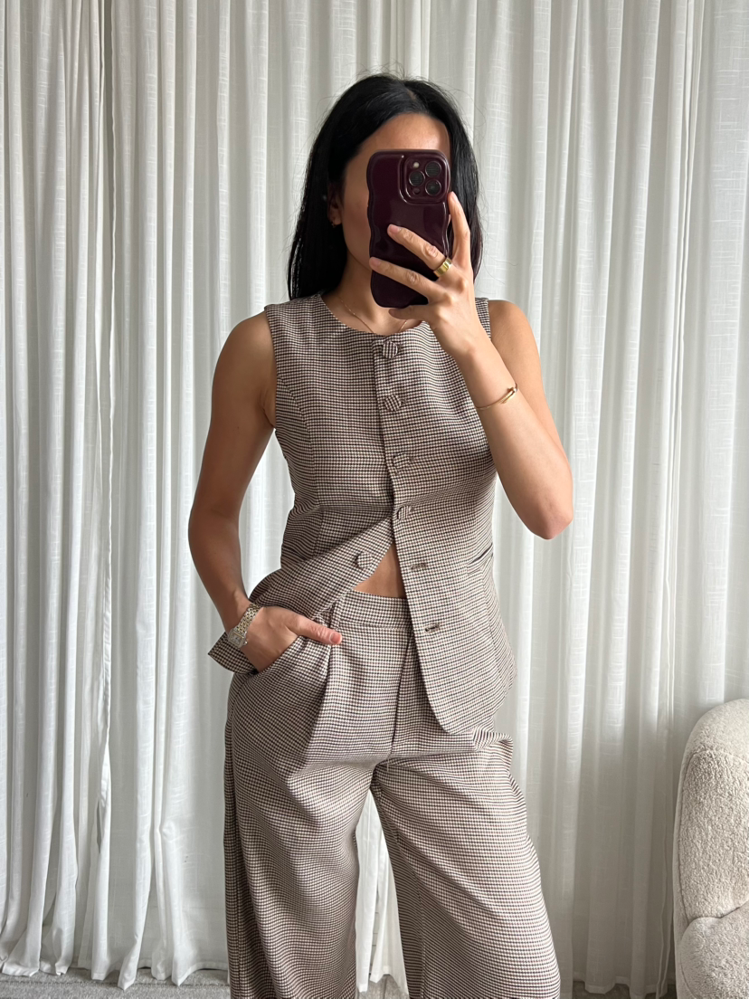 Chic, moderne et structuré, ce gilet sans manches à carreaux est la pièce parfaite pour composer un look working girl tendance.