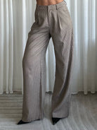 Sa coupe tailleur structurée et sa taille haute allongent immédiatement la silhouette, tandis que les jambes larges apportent un tombé fluide et raffiné.