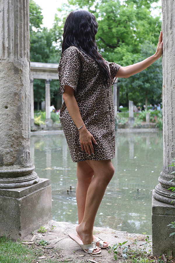 Adoptez un style audacieux avec cette robe chemise courte en 100% coton, ornée d’un imprimé léopard tendance. Sa coupe légère et confortable est idéale pour toutes les occasions, tandis que ses poches latérales pratiques ajoutent une touche fonctionnelle à ce modèle chic et facile à porter. Parfaite pour affirmer votre personnalité avec élégance.