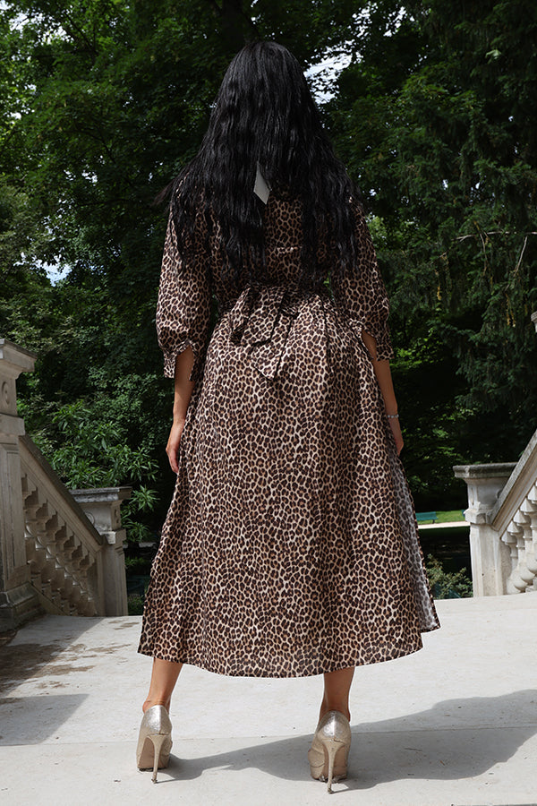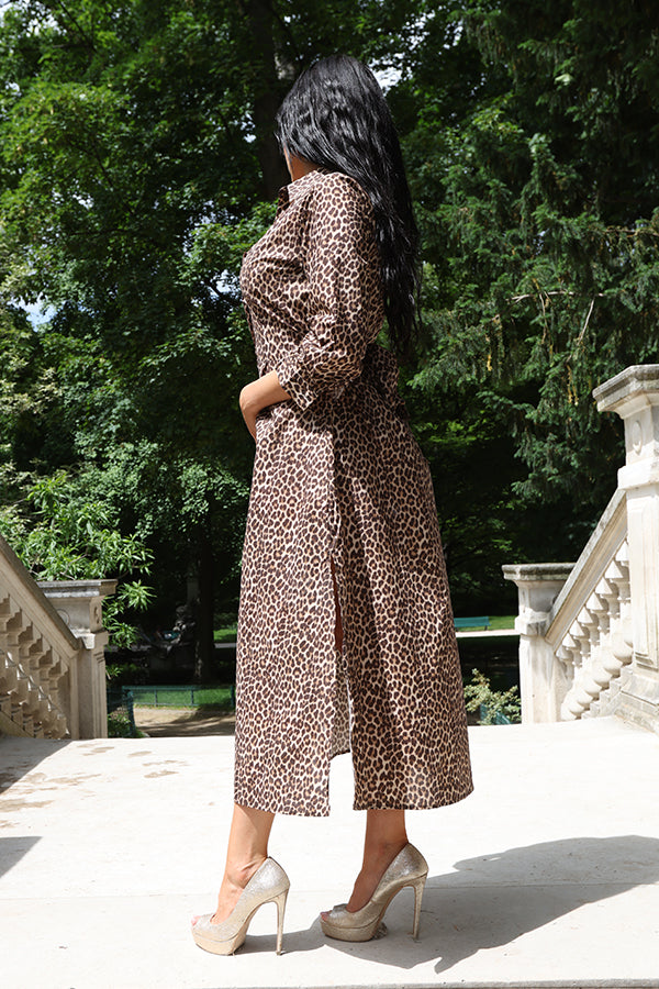 Cette robe chemise mi-longue en 100% coton allie confort et style audacieux grâce à son imprimé léopard tendance. Sa coupe évasée et son bas fluide offrent une silhouette féminine et élégante, tandis que la ceinture souligne la taille pour une allure parfaitement ajustée. Les manches mi-longues apportent une touche de sophistication, idéale pour toutes les occasions. Adoptez cette pièce incontournable pour un look à la fois chic et décontracté.