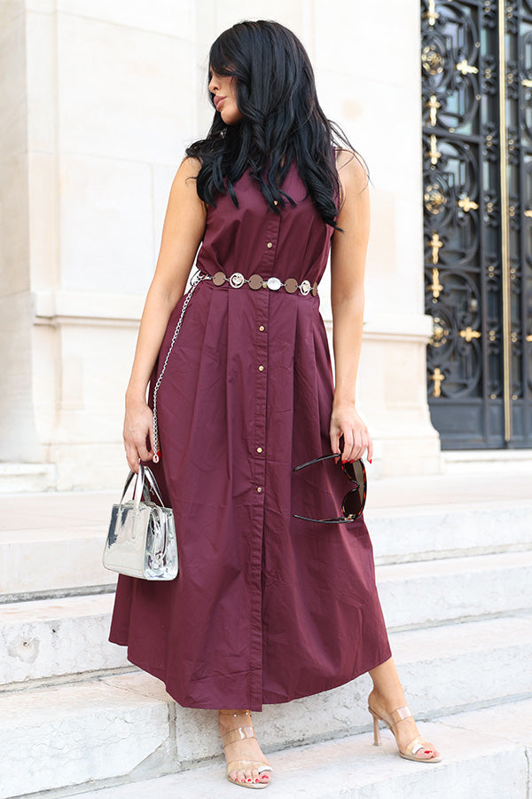 Découvrez cette robe chemise longue unie, conçue en 100 % coton pour un confort naturel et respirant. Sans manches et légèrement évasée, elle offre une silhouette élégante et fluide. La ceinture marque délicatement la taille tandis que la fermeture à boutons à l’avant et le col chemise apportent une touche classique et raffinée. Parfaite pour allier style et légèreté, cette robe polyvalente s’adapte à toutes les occasions.