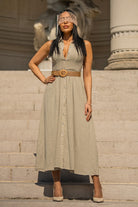 Craque pour la douceur et le raffinement de notre robe chemise Azure beige, une pièce intemporelle qui allie élégance et simplicité.